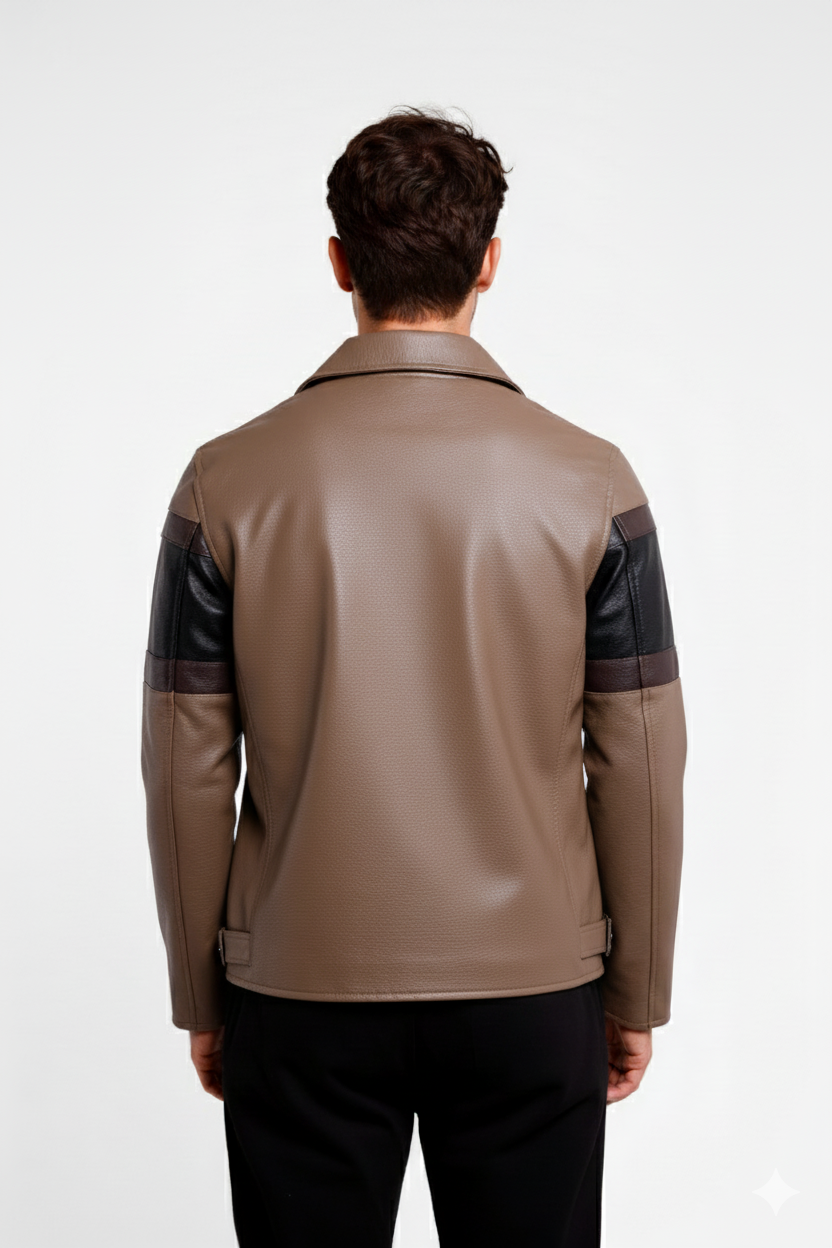 Erkek Şerit Detaylı Iki Yönlü Fermuarlı Klasik Yaka Suni Deri Ceket Mont - Erkek Giyim