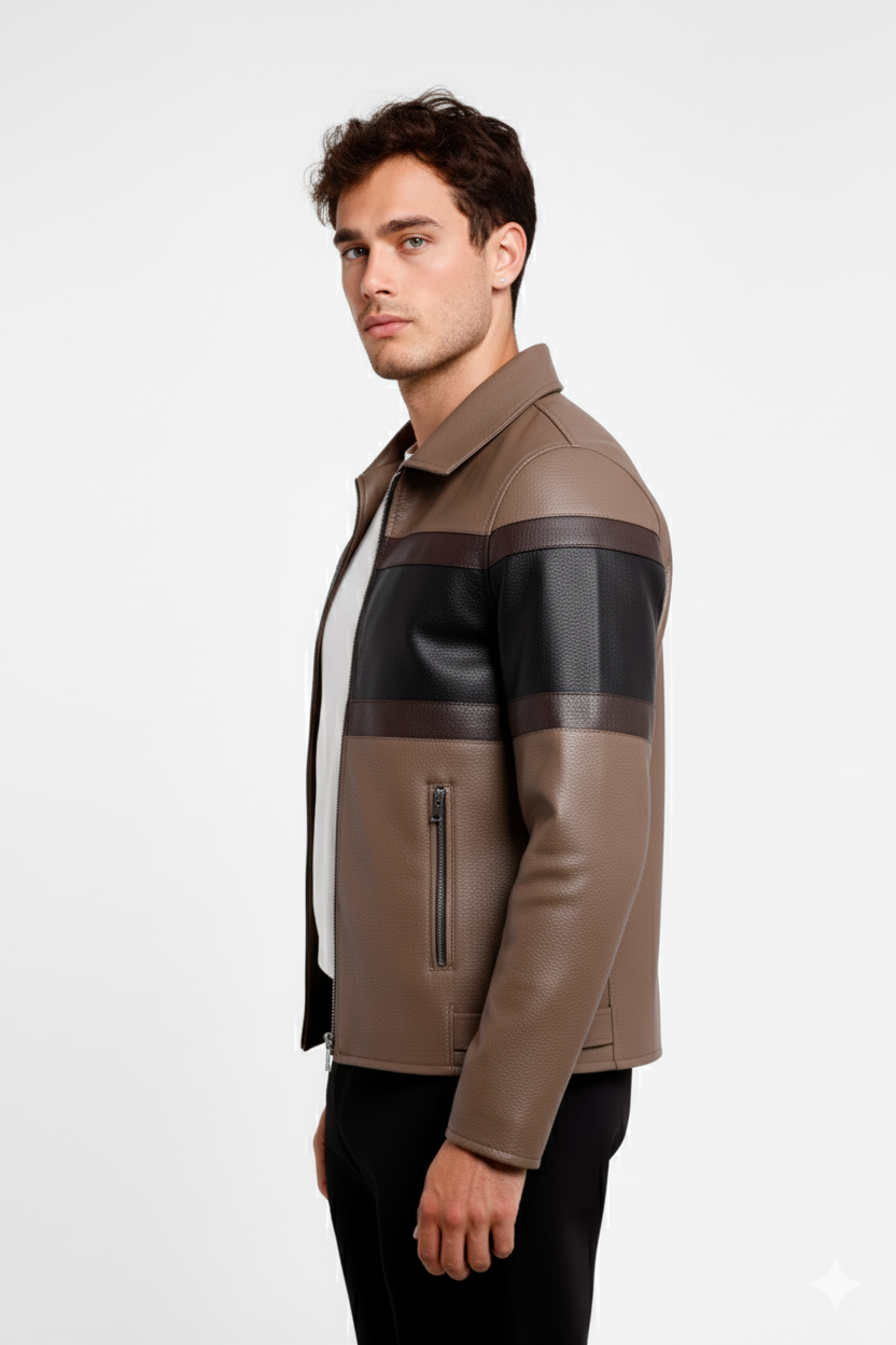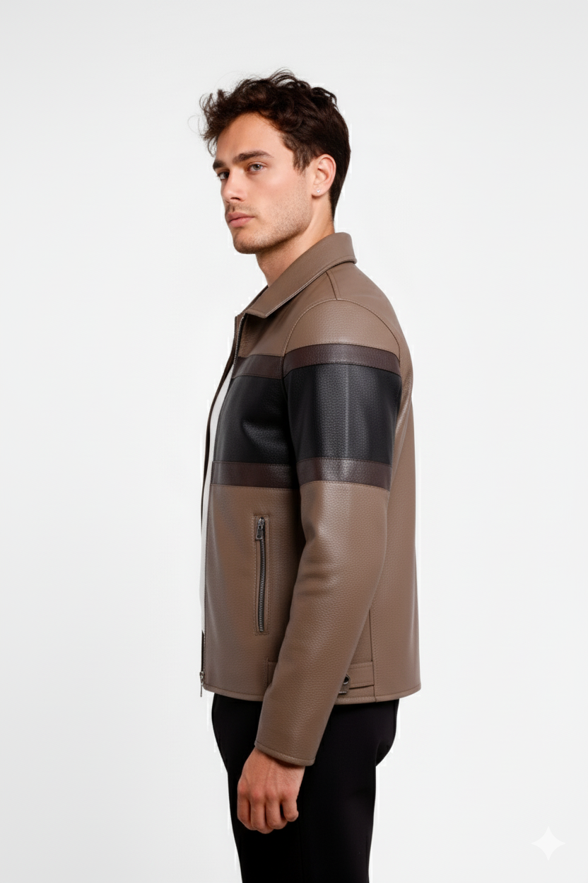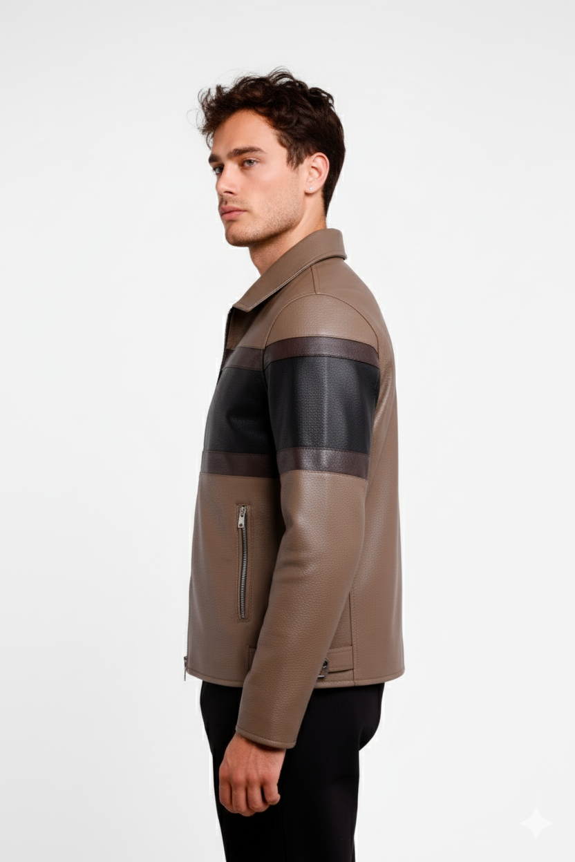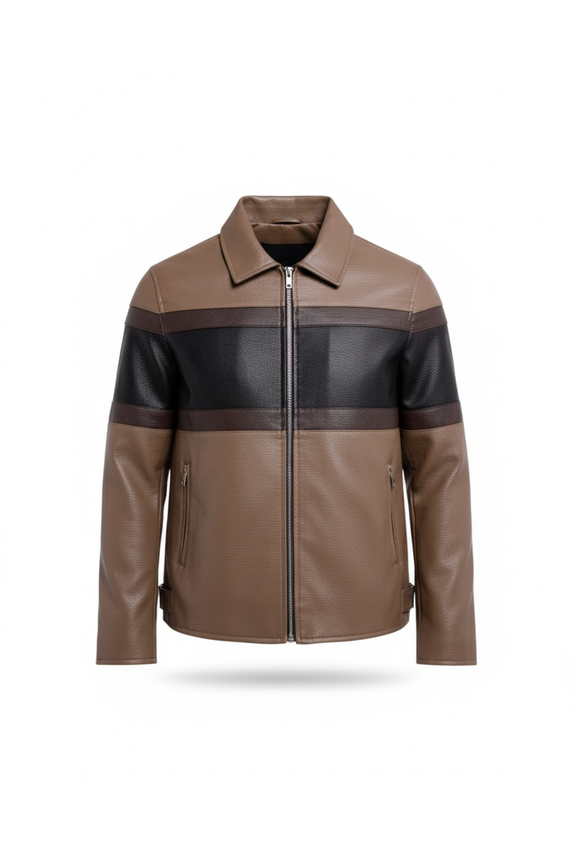 Erkek Şerit Detaylı Iki Yönlü Fermuarlı Klasik Yaka Suni Deri Ceket Mont - Erkek Giyim | MAGICALFASHION